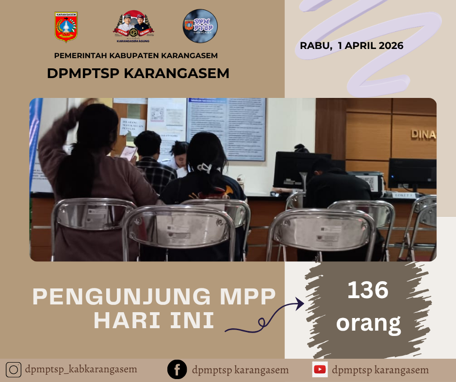 PENGUNJUNG MPP KARANGASEM Admin Berita 01 Apr 2026 15:48:10 Bagikan dengan : Berita Sebelumnya Kunjungan Kerja DPMPTSP Kota Denpasar